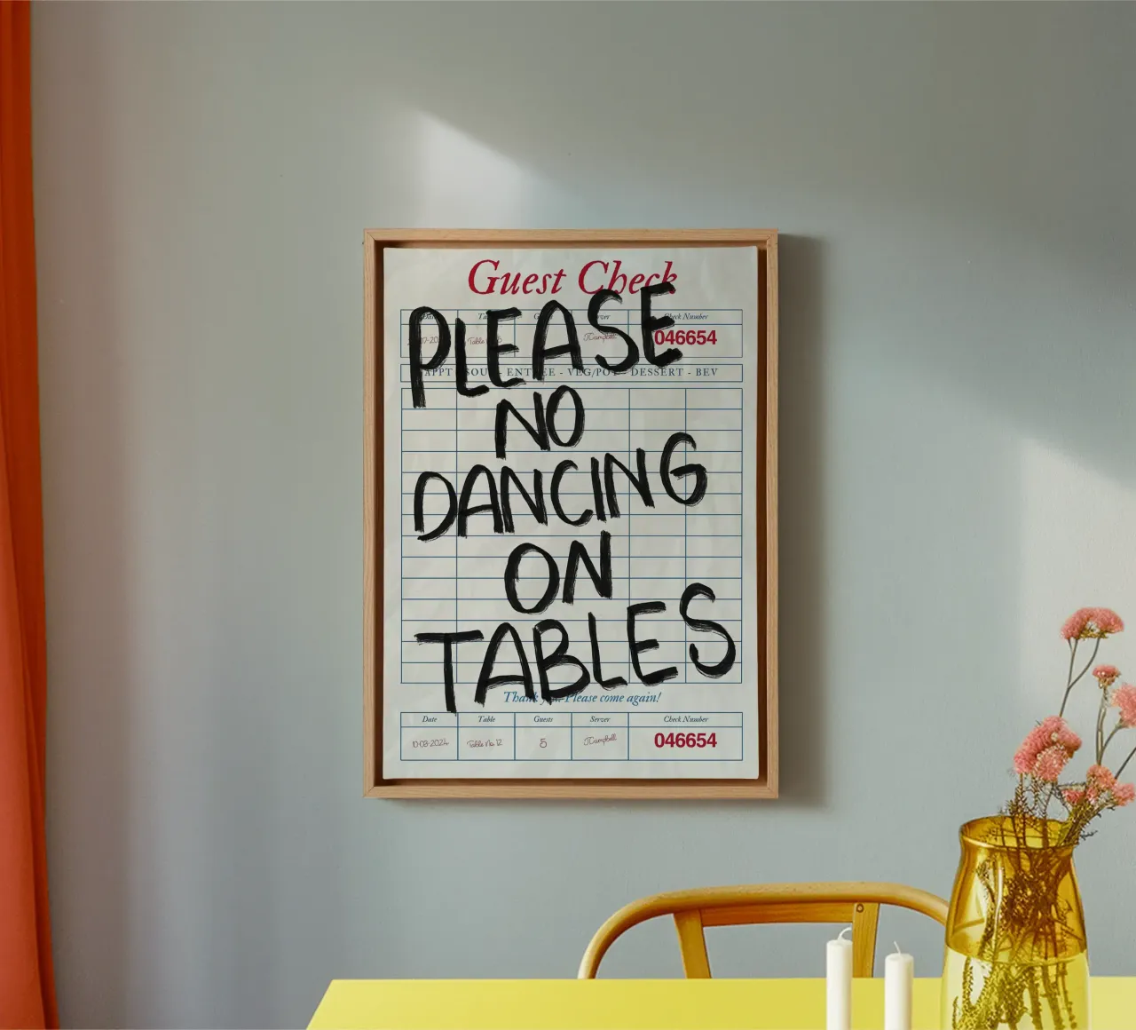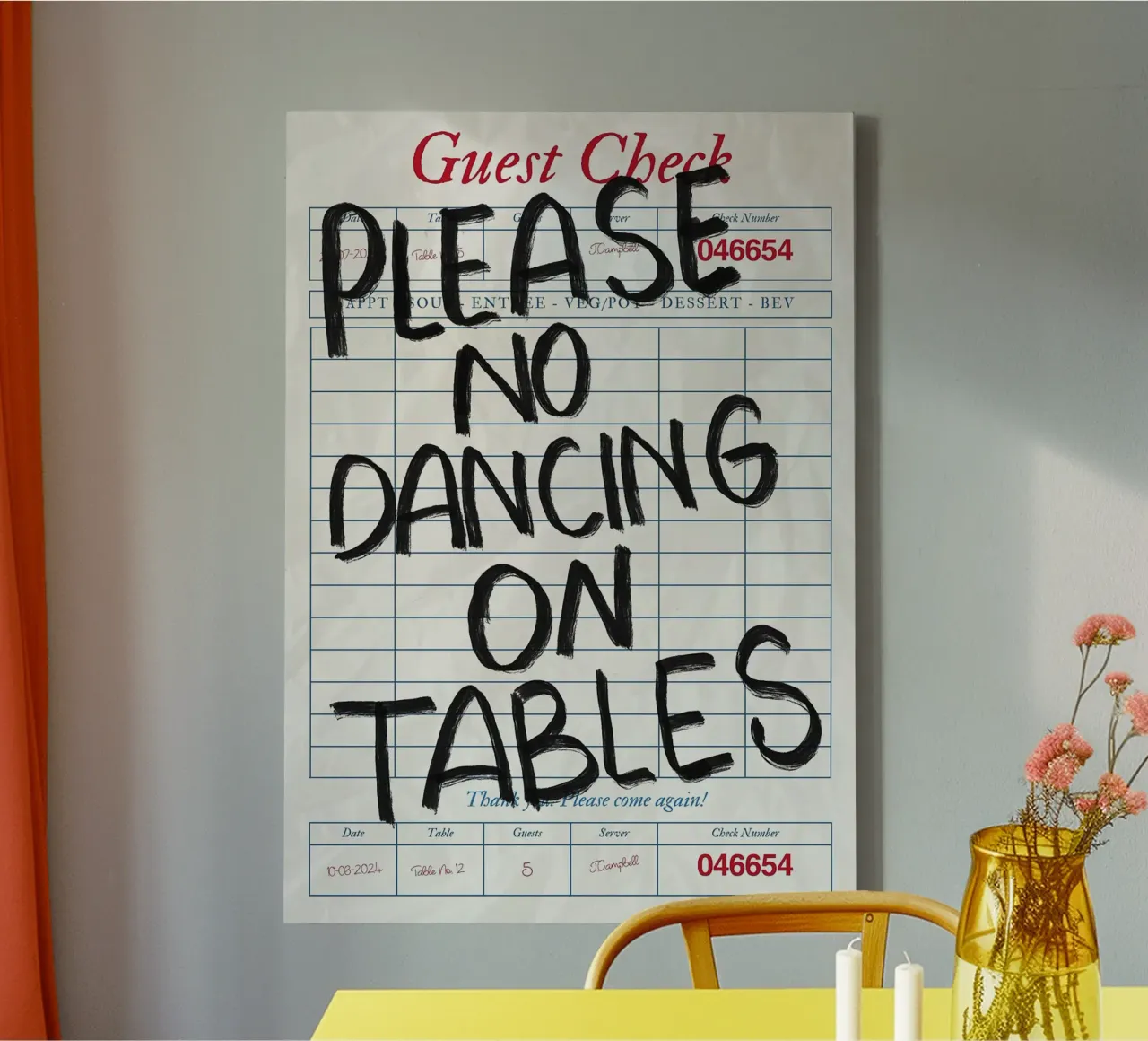 No Dancing on Tables Guest Check
