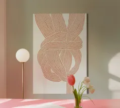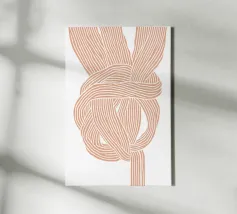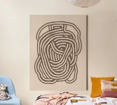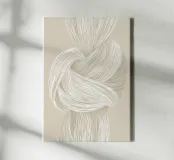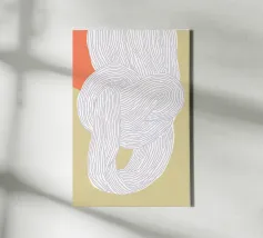 This modern, abstract illustration shows a large knot and twist in light beige and white-cream colours, inspired by Scandinavian boho style. The harmonious colour areas and lines create a childlike, playful pattern that celebrates the beauty of nature.