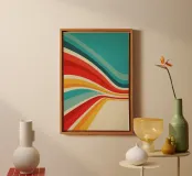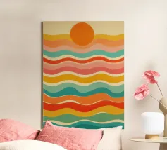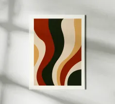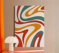 Abstract-visual road trip feeling: this poster pays homage to the retro design of the 70s and its dynamic colour curves are reminiscent of endless highways, freedom and Californian ease. The deliberately aged texture adds nostalgic charm, while the interplay of turquoise, red and sunny yellow brings optimistic energy to any room - equally ideal for creative workspaces or stylish living room walls.