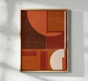 Retro-inspired art with overlapping forms in earthy orange and brown. The design has a timeless quality that fits beautifully in mid-century interiors, Scandinavian homes, or eclectic spaces with a nostalgic twist.