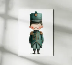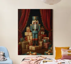 A traditional Christmas motif: a proud nutcracker soldier in a splendid uniform stands in the snow while snowflakes enchant the scene. This symbol of the festive season embodies nostalgia, tradition and the magic of Advent. With its bold colours and detailed elements, the motif brings festive elegance to any home. Perfect for murals, mugs, cushions or textiles - an ideal gift for lovers of classic Christmas art.