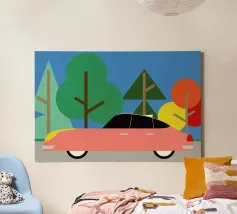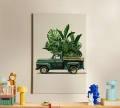 Add a touch of vintage charm to your living space with this Off Road canvas featuring a classic car surrounded by lush greenery. Perfect for those who love unique decor and want to bring a sense of adventure into their home.