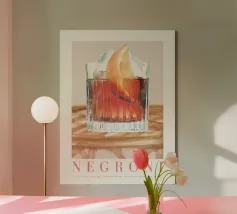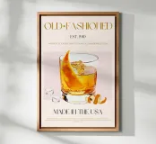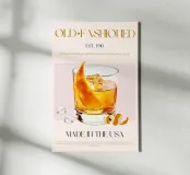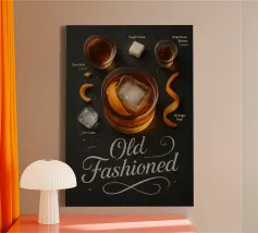 Set on a neutral, cream background, this elegant illustration of the famous old fashioned cocktail adds sophistication to any kitchen, cafe or dining area. This minimalist yet informative design will spark conversation in any setting, adding a refined touch to your environment.