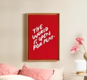 Brighten up your space with the vibrant and thought-provoking canvas design “Open” by LeDieg. This artwork presents a bold message, making a striking statement in any room. Perfect for lovers of modern art, its playful aesthetic fits seamlessly in living rooms, bedrooms, or creative workspaces. Ideal for those looking to energise their environment or inspire creativity. The stunning red background paired with impactful white lettering ensures it stands out as a focal point or adds an eye-catching touch to your decor. Easy to pair with other art pieces, it's versatile enough to suit various styles, from minimalist to eclectic. Make a perfect gift for art enthusiasts or anyone needing a little inspiration to 'play'!