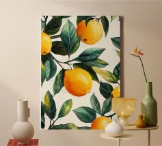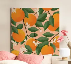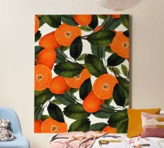 A vibrant orange pattern set against a crisp white background brings fresh energy and botanical charm. This clean and timeless design features juicy citrus fruits arranged in a balanced, natural way. Perfect for brightening interiors, textiles, or accessories with a subtle yet lively touch. The simple white backdrop highlights the vivid orange tones, making it ideal for summer vibes, kitchen decor, or any space craving a fresh citrus boost.