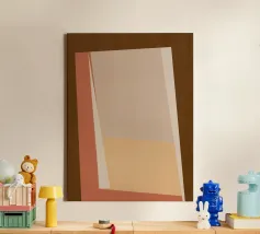 Several geometric shapes with muted colors are overlaid against a light-colored background. A dull olive rectangle dominates a portion of the canvas, partially overlapping a pale yellow shape, with a hint of blue peeking from beneath.