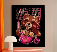 A cute and cuddly panda bear enjoying a delicious bowl of ramen. This playful design is perfect for food lovers and animal enthusiasts alike.