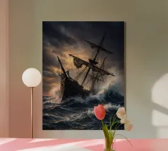 Poseidon is an impressive work of art that shows the god of the sea in his face (portrait). He rises from the waves, surrounded by a turbulent sea and dramatic clouds.
