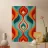 This artwork is a mesmerising optical illusion and a tribute to the psychedelic art and op art of the late 1960s and early 70s. Curved, flowing shapes in flaming red and warm orange meet cool tones of turquoise and blue-green, creating a dynamic, fiery yet aquatic tension. The vertical symmetry and layered, teardrop-shaped motifs are reminiscent of iconic fabric and wallpaper designs of the era. The pattern creates an incessant visual pull and almost seems to breathe. An energetic, hypnotic eye-catcher.