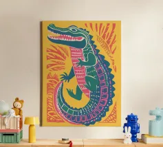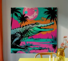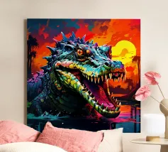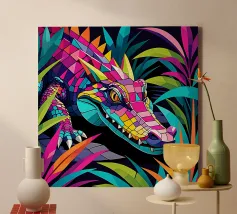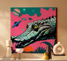 Psychedelic crocodile pattern in the style of the 60s canvas