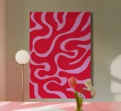 psychedelic design, red and pink art, abstract wave pattern, funky background, 70s style print, groovy aesthetic, bold abstract shapes, trippy artwork, vibrant swirl design, retro decor style, fluid lines art, colorful visual texture