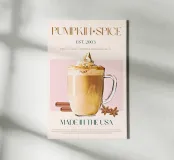 Set on a neutral, cream background, this elegant illustration of the famous pumpkin spice latte adds sophistication to any kitchen, cafe or dining area. This minimalist yet informative design will spark conversation in any setting, adding a refined touch to your environment.