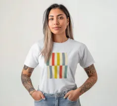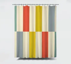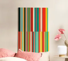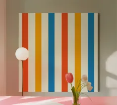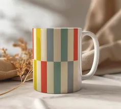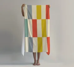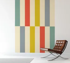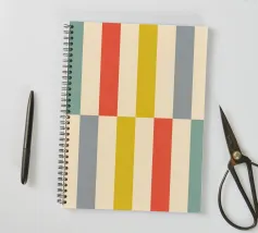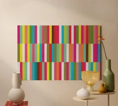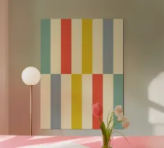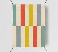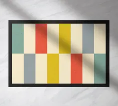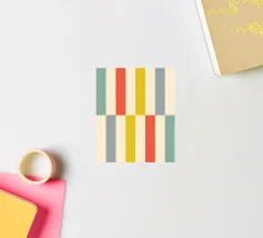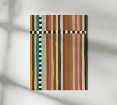 A timeless retro summer chequered stripe pattern featuring muted shades of blue, red, yellow, and teal on a soft ivory background, enhanced with subtle texture for a warm, classic feel. Effortlessly stylish, this versatile design is perfect for home decor, accessories, stationery, and more