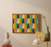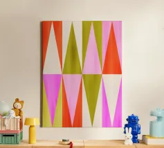 Retro Color Block Triangle Color Happy is a vibrant home decor and wall art collection that blends bold geometric shapes with a nostalgic mid-century modern aesthetic. The design features striking triangle patterns, playful color blocking, and cheerful hues, creating a lively yet balanced look that complements any modern space. Perfect for adding a pop of personality to your interiors, this collection embodies a sense of retro charm and artistic flair.