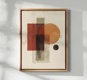Modern abstract wall art in earthy rust, dust orange and beige tones. With its layered forms and textured design, this artwork brings warmth and structure to minimalist, retro, or Scandinavian spaces.