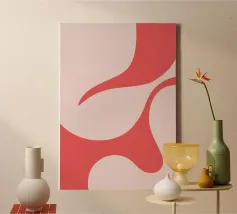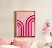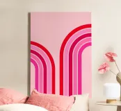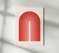 retro design, pink aesthetic, abstract rainbow, curved lines, colorful stripes, vintage vibes, red and pink art, minimal abstract, 70s inspired, modern decor trend, geometric pattern, bold color palette