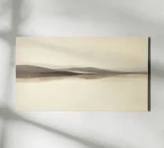 A soft, abstract landscape features a muted color palette with gentle transitions between light and dark shades. A large, white cloud hovers above a dark hill, creating a sense of calm and tranquility.