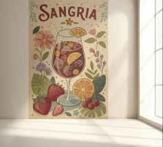 Transform your space with the delightful "Sangria vintage poster" by 🎁 NOBELART. This charming canvas art features a vibrant design with a refreshing glass of sangria surrounded by colourful fruits and flowers, perfectly embodying a relaxed summer vibe. Ideal for your kitchen, dining area, or bar, it adds a splash of personality to any room. The playful and retro design makes it a fantastic choice for anyone looking to brighten their home décor. Whether you're a cocktail enthusiast or simply adore botanical illustrations, this piece is sure to capture attention and spark conversations. It also makes a fabulous gift for housewarmings or any occasion! Bring joyful summer aesthetics into your living space today!