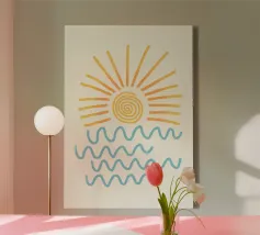 Dive into pure creative energy with this wildly expressive abstract seascape. A sun composed of chaotic, overlapping scribbles in fiery orange and golden yellow appears to dissolve into the atmosphere above rolling blue ocean waves. The frenetic line work creates a sense of heat shimmer and emotional intensity, as if the artist captured not just the scene but the feeling of standing before nature's spectacle. This piece celebrates spontaneity and raw artistic gesture, perfect for contemporary spaces that embrace bold, unconventional beauty and creative freedom.