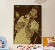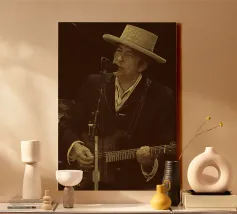 Wrapped in darkness and quiet strings, Dylan stands as a whispering shadow of song.