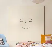 Simple line drawing shows a smiling face with blushed cheek canvas