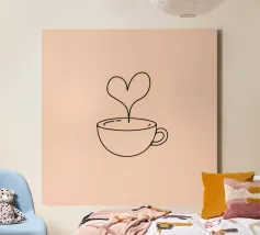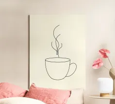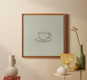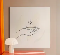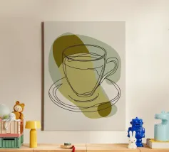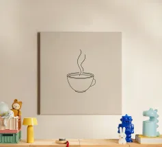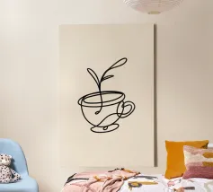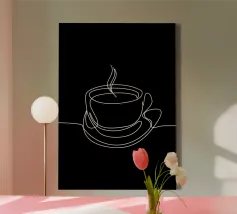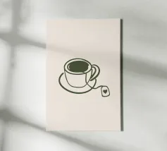 Simple sketch of a tea cup on a saucer displayed on a minima canvas
