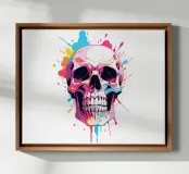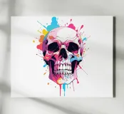 A striking illustration of a skull with a burst of vibrant ink spray in the background. This bold design blends edgy gothic vibes with modern street art energy, perfect for those who love dark yet colorful aesthetics.