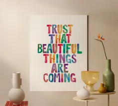 Brighten your space with this vibrant typography art print featuring rainbow watercolour hand-painted lettering on a crisp white background. The cheerful message encourages positivity and mindfulness, making it perfect for any room needing a splash of colour and inspiration. The delicate blend of hues creates a stunning visual effect, showcasing the artist's skill in watercolour techniques. This versatile piece complements various decor styles, from minimalist to eclectic. Ideal for those seeking a daily reminder to stay positive and take life one step at a time, it's a thoughtful gift