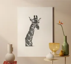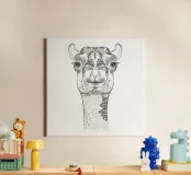 This smiling camel with ornate patterns embodies serenity and exoticism - a decorative highlight from the world of oriental-inspired illustrations.Detailed black and white drawing of a camel Symmetrical ornaments and floral patterns Combines humour with cultural aesthetics Ideal for posters, textiles or notebook covers Expressive, almost human facial expressions