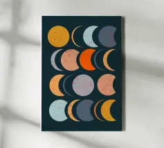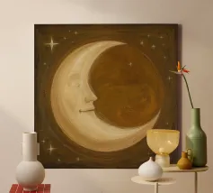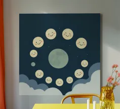 Smiling Moon Faces in Different Phases with Various faces canvas