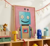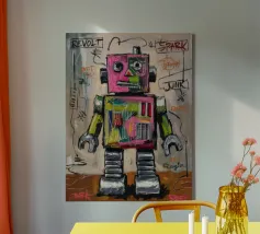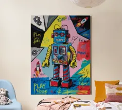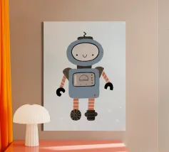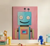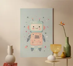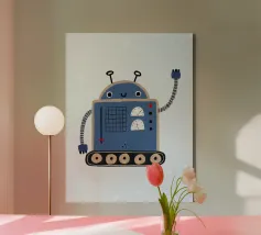 Brighten up any room with this cheerful robot wall art! Featuring a smiling blue robot with a pink backdrop, this vibrant and playful design is perfect for sparking joy and creativity. Whether displayed in a nursery, playroom, or classroom, this artwork adds a fun and imaginative vibe to any space. Imagine this happy robot poster on the wall of a playful nursery, brightening up a classroom, or inspiring fun in a kid’s creative corner. Its bold colors and cheerful vibe make it an engaging addition to any space.