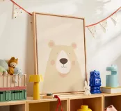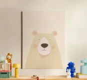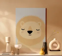 A gentle minimalist illustration of a light-colored bear, created with smooth shapes, soft shading, and a warm, neutral palette. The calm expression and airy background give this artwork a peaceful, comforting presence. Perfect for nurseries, children’s rooms, or modern Scandinavian-inspired interiors, this piece adds subtle warmth and a sense of quiet charm to any space.