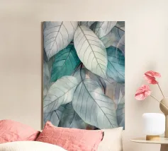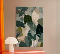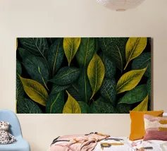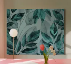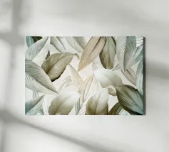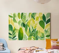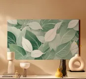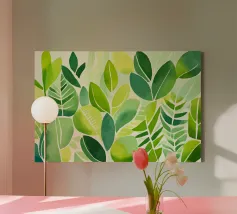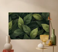 A collection of soft green leaves with delicate textures and shades creates a soothing and harmonious botanical pattern, evoking feelings of peace and serenity.