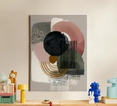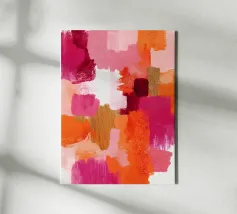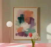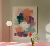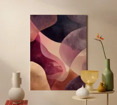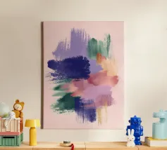 A soothing blend of dusty pink, deep teal, and lilac tones in painterly texture. The perfect mix of energy and calm for modern decor lovers.