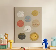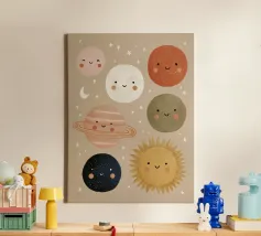 Bring the cosmos into your child's room with this vibrant canvas art featuring playful planets and stars. Perfect for sparking imagination and curiosity, this canvas adds a touch of adventure to any kids' space.