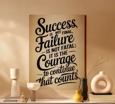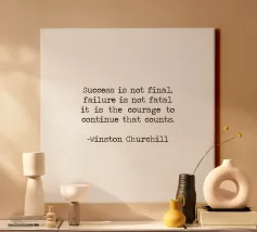 "Success if not final, failure is not fatal. It is the courage to continue that counts" Winston Churchill Courage quote minimalist black and white typewriter typography word art famous saying.