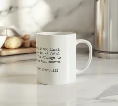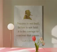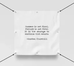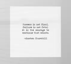 "Success if not final, failure is not fatal. It is the courage to continue that counts" Winston Churchill Courage quote minimalist black and white typewriter typography word art famous saying.