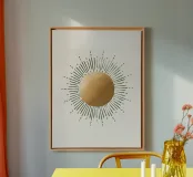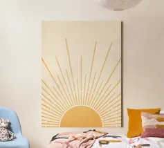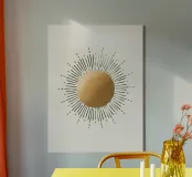 This modern sun canvas features a warm golden sunburst design, perfect for adding a stylish touch to living rooms, bedrooms, or offices. Printed on premium 350gsm matte canvas with fade-resistant inks, it ensures long-lasting vibrancy and durability. A contemporary choice for home decor or as a thoughtful art gift.