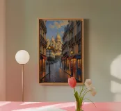Under the warm embrace of sunset hues, the Sacré-Cœur Basilica crowns the lively streets of Montmartre. The cobblestone paths, vintage lamp posts, and picturesque shopfronts create an enchanting tableau. This corner of Paris epitomizes charm and history, where every detail tells a story of artistic legacy and romantic grandeur. Stroll through these golden streets and feel the magic of Montmartre come alive.
