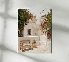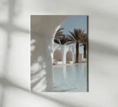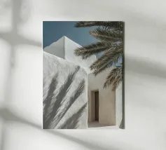 Escape to a bohemian paradise with this stunning photograph of a white outdoor shower on a sunlit rooftop in Marrakech. The minimalist design, with its clean lines and natural textures, perfectly blends with the warm Moroccan sun, creating a tranquil oasis high above the city. Surrounded by white walls and terracotta tiles and a gentle breeze, this serene space evokes a sense of freedom and relaxation. Ideal for infusing your home with the laid-back elegance of Moroccan style, this image captures the beauty of outdoor living and the spirit of Marrakech’s timeless charm.
