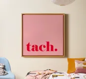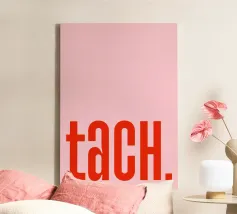 TACH in raspberry red on pink - a cheerful summer greeting for the home canvas
