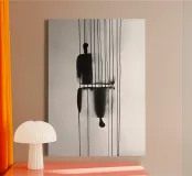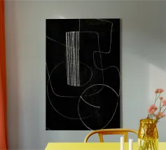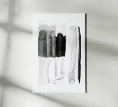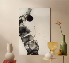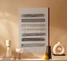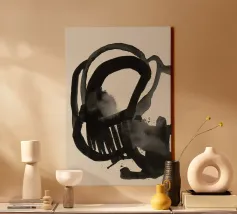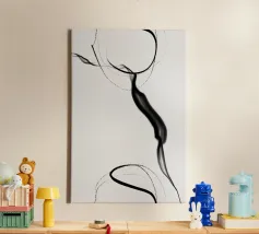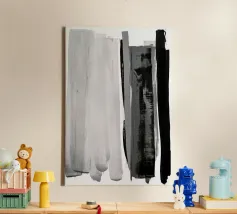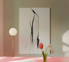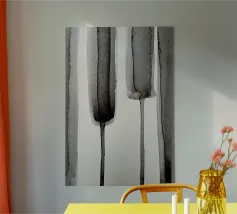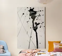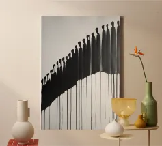 This fascinating work of art plays with the tension between clear lines and flowing shapes. The vertical stripes give the composition a sense of structure, while the black drops add visual dynamism and depth. In its reduction to black and white, this abstract work invites interpretation and conveys a balance between order and chaos. Perfect for modern spaces seeking minimalist elegance with emotional depth.