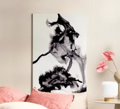 This fascinating work of art plays with the tension between clear lines and flowing shapes. The vertical stripes give the composition a sense of structure, while the black drops add visual dynamism and depth. In its reduction to black and white, this abstract work invites interpretation and conveys a balance between order and chaos. Perfect for modern spaces seeking minimalist elegance with emotional depth.