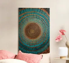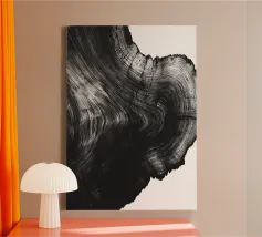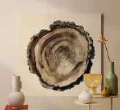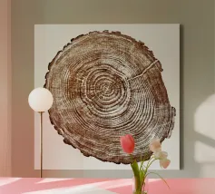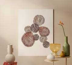 A minimalist yet intricate watercolor rendering of a tree cross-section, capturing the quiet strength and passage of time within each ring. This organic, earthy piece is perfect for modern nature-inspired interiors, cabins, or anyone drawn to the beauty of raw natural forms.