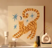 Treechild, whose real name is Nina, is an independent artist who lives with her family in the Netherlands. Born in Berlin, she lived in Bavaria and Switzerland for several years before moving to Holland. Inspired by her father, a painter, and her mother, a talented decorator, she grew up in a world of creativity and design. Visits to museums and exhibitions shaped her love of art from an early age. As a self-taught artist, Nina learnt drawing and photography herself. Her unique style has attracted clients such as Tchibo, Mercedes, Otto and Ikea. Treechild's work is sold worldwide - including in Dubai, India, Australia and Europe - and has been featured in magazines and Dutch interior design TV shows. Working mainly digitally, Nina experiments with different styles to keep her art fresh and innovative. Her works, characterised by vibrant colours, bold perspectives and thoughtful details, reflect her passion for diversity and modern aesthetics. She is supported by her husband Florian, who manages Treechild behind the scenes.