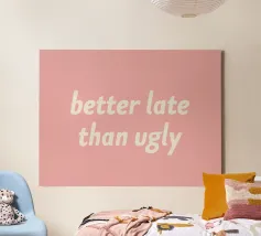 Discover the minimalist 'Tiny Soul' canvas by Simple, featuring clean white typography on a rich pink background. This modern wall art piece adds a subtle but impactful accent to bedrooms, living rooms, or personal creative spaces. Crafted with premium quality materials adhering to EU standards, perfect for gifting or freshening up your home decor with contemporary style.