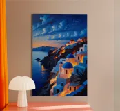 Twilight Glow Over Santorini's Clifftop Architecture canvas