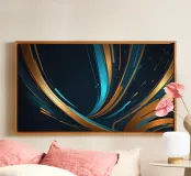 A dynamic composition features fluid lines in shades of gold and teal against a dark backdrop, offering a contemporary aesthetic perfect for digital or print applications.