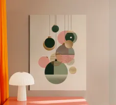 This abstract composition explores harmony through overlapping geometric forms and a warm, vintage-inspired palette. Rounded rectangles intersect softly, creating layered transparencies that suggest movement and depth without rigid structure. Tones of terracotta, coral, ochre, soft cream, and muted gold evoke mid-century modern design while remaining fresh and contemporary. Subtle surface texture adds a tactile quality, balancing precision with warmth. The artwork reflects quiet rhythm and balance, making it a refined statement piece for modern, minimalist, or retro-inspired interiors.