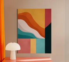 This abstract waves canvas wall art features vibrant orange, soft teal, and cream tones, perfect for modern living spaces. Printed on premium 340gsm cotton-poly canvas with a textured finish, it brings a dynamic yet calming effect to bedrooms, offices, or lounges. Crafted to EU quality standards, it's an ideal non-personalised wall decor choice for contemporary homes or gifting.